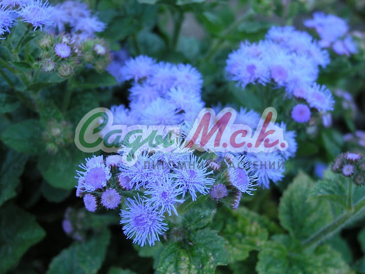 Цветение наступает рано, уже в начале июля, и продолжается на протяжении 3 месяцев. К самым распространенным сортам данной серии относят Агератум Клауд Найн Пинк, который имеет компактную форму и яркие розовые цветки. Цветет обильно и долго. Используют его при создании альпийских горок или как бордюрное растение.