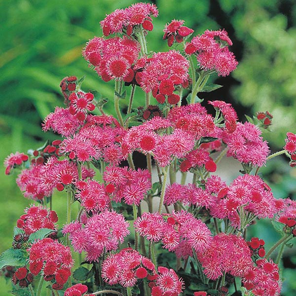 Агератум Рэд Си срезочный F1 – ослепительный яркий сорт с пурпурно-розовыми цветами. Цветки крупные, центральная часть имеет рубиновую окраску, что смотрится достаточно необычно для такого вида растения. Высота взрослого агератума выше обычных сортов, достигает порядка 30 см – 40 см. Его можно использовать в срезке; букеты таким образом станут интереснее.