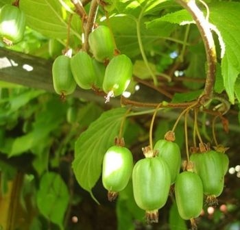 Лиана высотой от полутора до двух метров с красивыми изумрудными листьями. Однако при высадке по соседству с крупномерами листья актинидии Находка бледнеют, что, в принципе, не сказывается на объемах ежегодных урожаев.