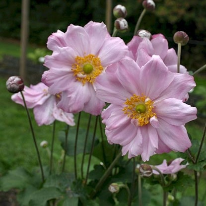Осенняя анемона японская с бледно-розовыми полумахровыми цветками. Многолетнее корневищное растение, с перисто-рассеченными, прикорневыми и стеблевыми листьями. Предпочитает рыхлые, хорошо дренированные, перегнойные почвы, но может расти и на песчанных, но более плодородных. Зимостойка. Первую зиму после посадки рекомендуется мульчирование. Рекомендуется для посадок в группах, массивах, около кустарников, в подлеске около дорожек и на срезку.