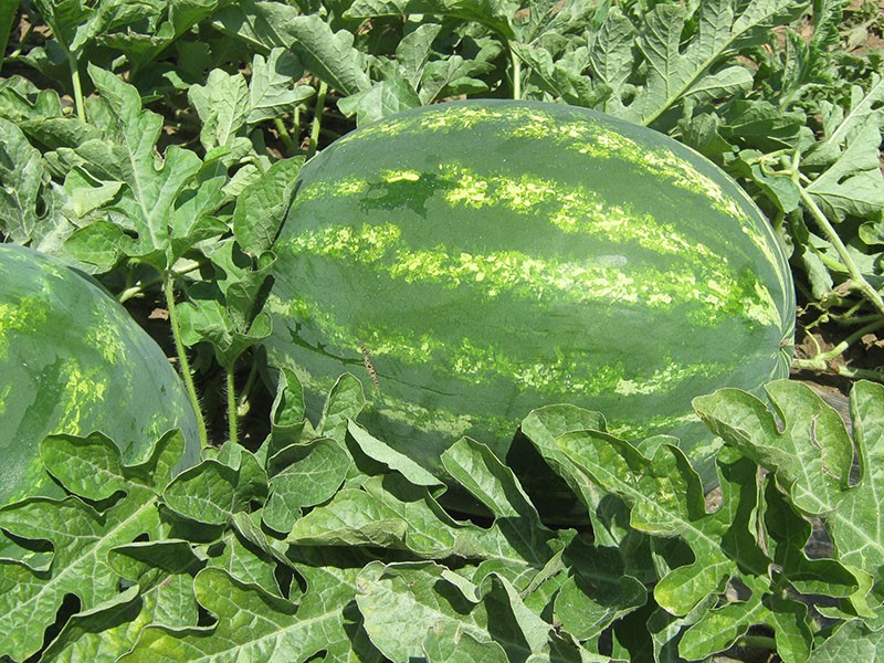 Арбуз Colosseo - раннеспелый сорт (70 дней). Листья густые, плоды хорошо укрыты, долго не перезревают. Плоды крупные, весом до 14 кг. Форма плодов округло-эллиптическая, окрас кожуры темно-зеленый со светлыми яркими полосами. Окрас мякоти ярко-красный. Аромат приятный. Эти арбузы употребляются в свежем виде. Страна-поставщик - НИДЕРЛАНДЫ.