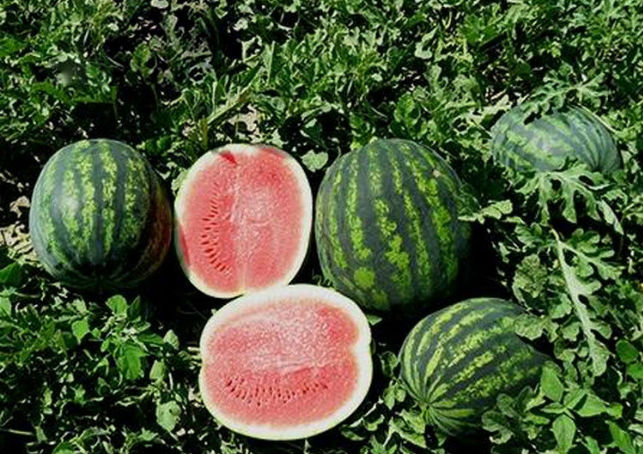 Арбуз Romanza - среднераннее гибридное растение с плетьями средней длины. Плоды круглой формы, зеленые, полосатые. Вес плодов составляет 5-10 кг. Мякоть красного цвета, хрустящая, высоких вкусовых качеств, сладкая. С одного растения можно собирать урожай 3 раза. Плоды предназначены для длительного хранения. Страна-поставщик - Нидерланды.