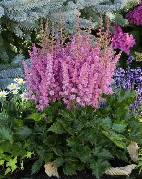 Сорт Little Visions in Pink — это астильба, растущая компактным кустом и имеющая нежные соцветия насыщенно-розового цвета. Стебли достигают в высоту 35-40 см. Листья зеленые блестящие пышные имеют резные края. Соцветия появляются в июле и держатся до начала августа. Растение предпочитает тенистые участки, но достаточно хорошо переносит солнечный свет, поэтому часто высаживается в местах с переменной затененностью. Астильба неприхотлива и красива, это объясняет ее популярность. Растение можно встретить на городских клумбах и в парках, в дачных цветниках и палисадниках. Любит обильный полив. Высаженная в контейнеры астильба часто становится украшением входных зон, веранд, патио, летних площадок кафе и ресторанов.