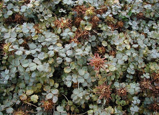 Ацена Буханана — это многолетний почвопокровник, не превышающий в высоту 5-10 см. Разрастается быстро, стебли сильно ветвятся, образуя на земле низкий плотный ковер. Побеги тонкие, основные достигают в длину 60 см, боковые короче — до 25 см. Листья зеленые зубчатые, имеют металлический блеск, сосредоточены на верхушках стеблей. Зацветает в июне, образуя небольшие белые соцветия в форме шариков, которые в августе становятся колючими семенными коробочками, напоминающими морских ежей. Ацена Буханана очень декоративна и совсем непривередлива: растет в обычной почве, требует умеренного полива, достаточно засухо- и морозоустойчива, любит свет, но хорошо развивается и в тени, не вредителями, устойчива к вытаптыванию. Идеальна для ковровых клумб и альпинариев.