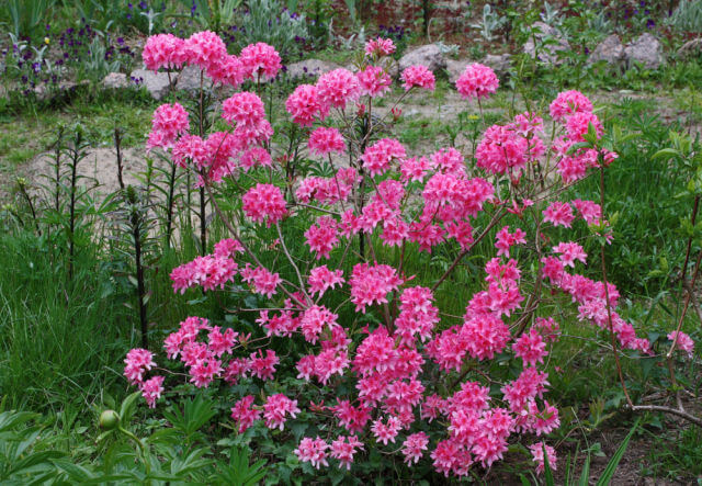 Азалия(рододендрон листопадный) Rosy Lights цветет обильно, цветки темно-розовые, диаметром несколько более 3 см, на центральном лепестке винно-красный румянец. Морозоустойчивость до минус 42°C. Из-за исключительной морозостойкости и привлекательных цветков сорт заслуживает широкого распространения.