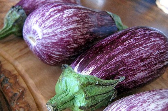 Баклажан Tsakoniki - раннеспелый кустарник с фиолетовыми стеблями и цветками. Высота растения достигает 65 см. Плоды цилиндрические, вытянутые, слегка изогнутые. Их окрас насыщенно-фиолетовый с яркими белыми полосами. Мякоть плотная, кремово-белого цвета. Страна-поставщик - Нидерланды.