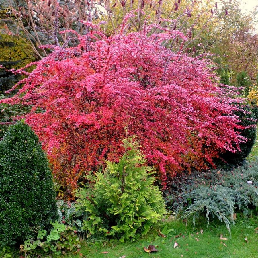 Барбарис Тунберга Атропурпуреа в табеле о рангах декоративных растений занимает одно из ведущих мест. По сравнению с другими кустаринками семейства барбарисовых у этого сорта есть несколько неоспоримых преимуществ. Он, как и другие сорта барбарисов Тунберга, наряден и ярок, но при этом обладает недюжинным ростом – взрослое растение достигает 4 метра в высоту! Да и жизненный цикл его достигает 65 лет, так что, выбирая куст для живой изгороди, стоит обратить внимание на этого яркого исполина. Барбарис Атропурпуреа относится к семейству барбарисовых. Это красивый раскидистый кустарник. Ветви растения имеют острые шипы-колючки – это видоизмененные листья. Они практически на протяжении всего сезона сохраняют пурпурный цвет. Изменение цвета в период вегетации незначительное, оно отличается в основном насыщенностью тонов. В начале сезона листья ярко-пурпурного тона, в середине тона слегка приглушены, а в конце к цвету добавляется глубокий насыщенный тон