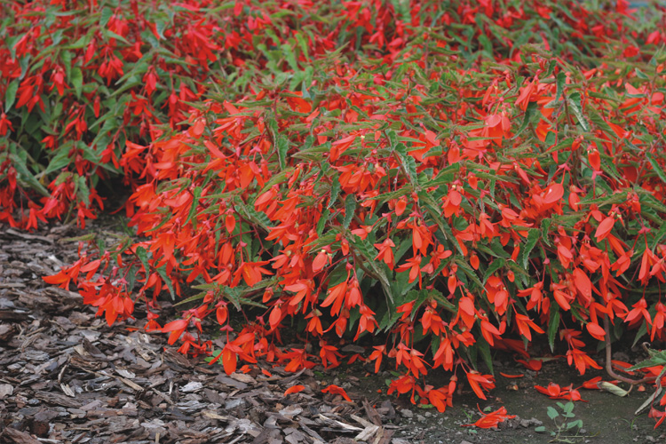 Эксклюзивный гибрид с ампельным габитусом. Необычайно пластичный к интенсивности освещения – в отличие от других клубневых бегоний, отлично цветет на ярком солнце. Листья при этом выглядят немного бледнее, чем в затенении, но их практически не видно за лавиной белоснежных цветков Ø6-7 см. До высоты 35 см растения имеют прямостоячую форму, далее начинают интенсивно куститься и образуют пышные каскады в вазонах или приобретают стелющуюся форму на клумбах. Гибрид хорошо адаптирован к засухе и не страдает от дождей. Зацветает через 14-15 недель от всходов.