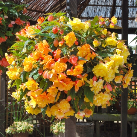 Изящные стебли этой ампельной бегонии с каскадом махровых цветков и многочисленными новыми абрикосовыми бутонами все лето и осень великолепно смотрятся в настенных кашпо, подвесных корзинах, горшках на цветочных подставках и полках. Размер цветков 6-8 см. Семена или гранулы высевают с декабря по март, поверхностно, во влажный субстрат. Прорастание на 7-14 день при оптимальной температуре 23...25 С. Через 6 недель пикировка и первая подкормка азотным удобрением. Спустя 11 недель пересадка: одиночные растения - в горшки диаметром 10 см, по 3-5 растений - в горшки диаметром 25, по 3-5 растений - в корзины диаметром 30 см. Выращивание при температуре 20 С. С момента прорастания и до середины марта растениям необходимо обеспечить 14-часовой световой день. Рекомендуется еженедельная подкормка азотными удобрениями для лучшего развития корневой системы. Молодые растения необходимо притененять от прямых солнечных лучей. Короткий день и температура ниже +16 С способствуют клубнеобразованию, но задерживают начало цветения.