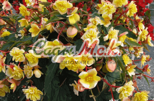 Высота 20-30 см. Размер цветка 8-9 см. Клубневая бегония с зеленым листом и крупными махровыми соцветиями. Растение имеет компактный шаровидный габитус, хорошо ветвится от корня. Соцветия густомахровые насыщенных окрасок. Идеальная сферическая форма куста. Используется для выращивания в горшках, контейнерах и в открытом грунте, оптимально для ампелей.