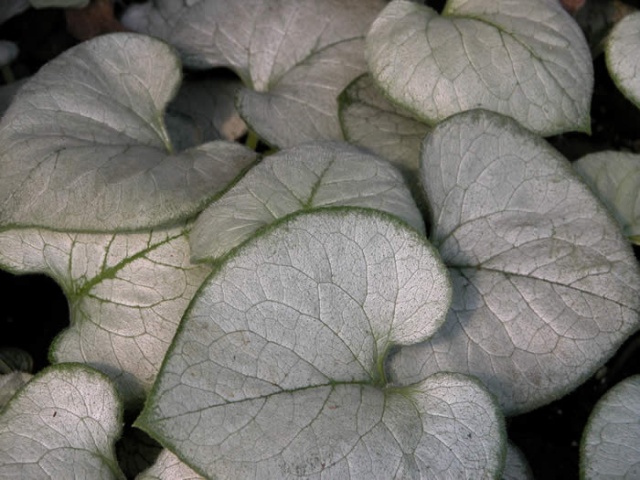 Бруннера крупнолистная "Лукинг Гласс" (Brunnera macrophylla 'Looking Glass') - многолетнее травянистое растение с красивыми, крупными листьями. Высота растения может достигать 20-30 см. Стебли бруннеры мощные, шершаво-опушенные, облиственные. Лист сердцевидной формы. Цветки бруннеры достигают размера 0,5- 0,7 см в диаметре, в верхушечных, метельчато-щитковидных соцветиях, обильно обсыпающие весь куст. Окраска цветков бледно-голубая с белым пятнышком в центре. Внешне цветок похож на цветок незабудки, но цветки незабудок имеют желтый "глазок". Теплой, продолжительной осенью может цвести повторно.