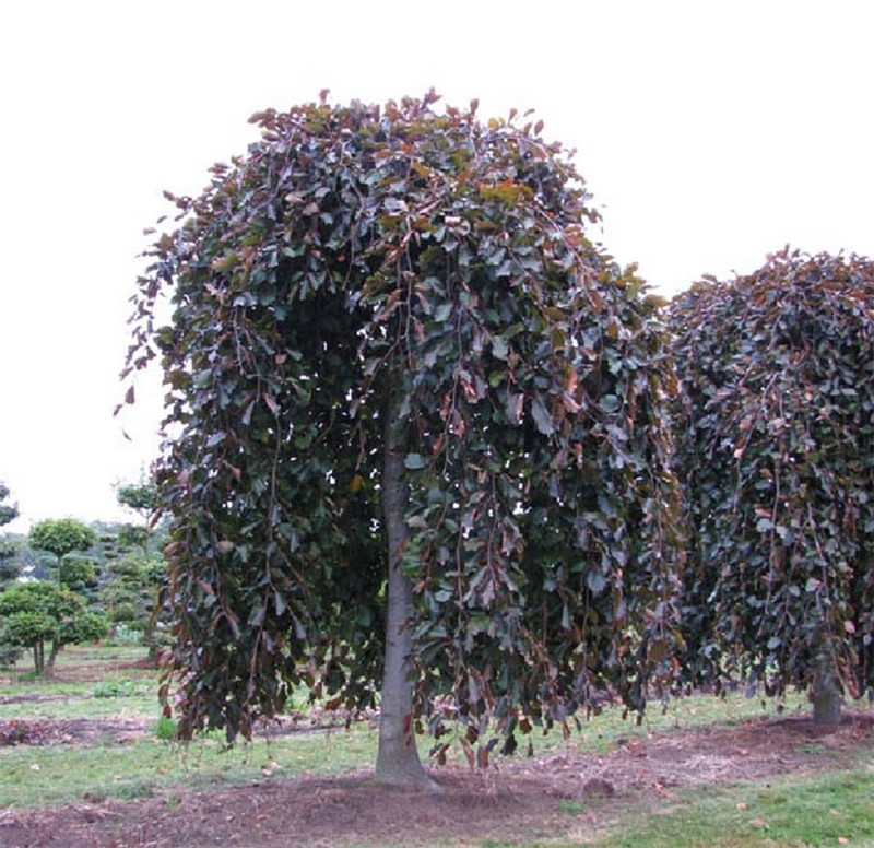 Бук лесной Purpurea Pendula является плакучим небольшим деревцем с характерными листьями темно-пурпурного цвета. Смотрится эффектно, напоминает пурпурный водопад, может прививаться на штамб.