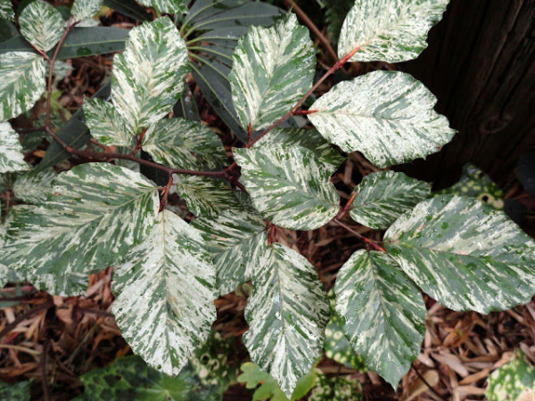Бук мелкий, кустистый, медленнорастущий. Высота: 3м. У него двухцветные бело-зеленые листья, которые осенью становятся медными. Цветет на рубеже апреля-мая, цветки неприметные, желто-зеленые. Предпочитает солнечные или полутенистые места. Любит перегной, проницаемые поверхности.