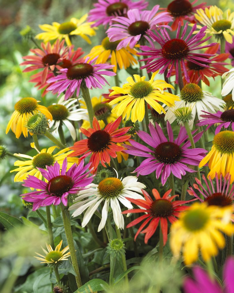 Эхинацея Баттерфляй, микс — травянистый многолетник с крупными соцветиями (до 12 см) от жёлтого до пурпурного цвета. Цветёт обильно, с июля по октябрь. Кусты компактные, высота до 60 см. Отличный медонос. Используется в групповых и одиночных посадках, великолепна в комбинациях с хвойниками, кустарниками и папоротниками.