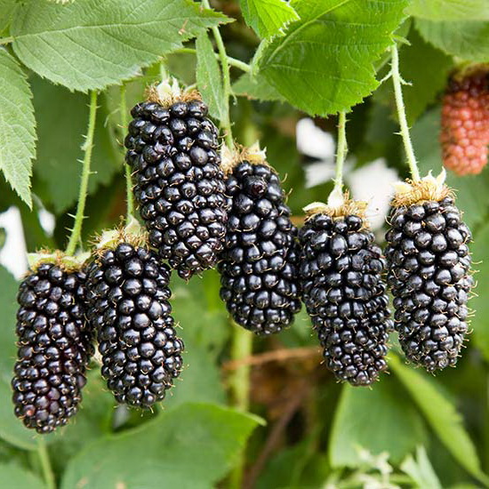 Саженцы ежевики Kiowa выбирают за огромные для ежевики ягоды. Они набирают массу от 13 до 32 г. Плоды черные, вкусные. Созревание наступает в конце июня и длится около полутора месяцев. Длительное плодоношение позволяет заниматься реализацией ежевики в течение 6 недель. Все время сбора размер ягод сохраняется и даже увеличивается. Сорт колючий, побеги повислые, но прочные, длиной до 1,5 м. Устойчив к заболеваниям.