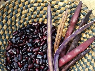 Фасоль Purple Kingsessing производит длинные, ровные стручки. При полном созревании они меняют свой окрас на пурпурный и темно-фиолетовый. Созревшие бобы продолговатые, плоские, темно-пурпурные, почти черные.