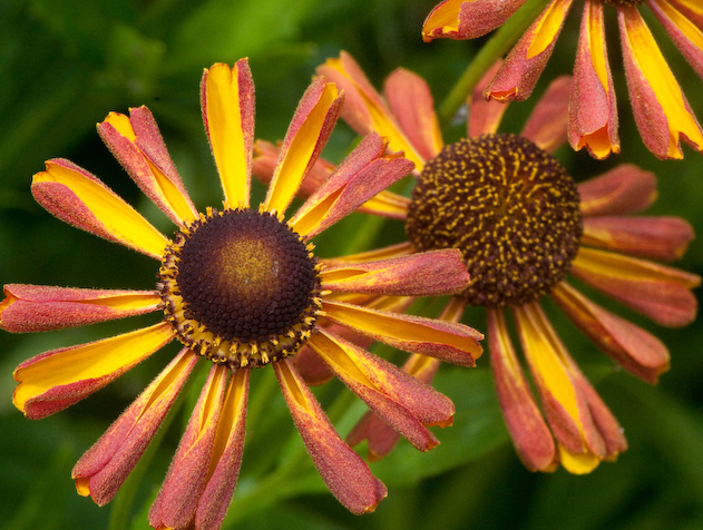 Гелениум осенний Лойсдер Век Век (Helenium autumnale) высаживают на плодородных, обеспеченных влагой нейтральных почвах. Высокие растения с разветвленными стеблями достигают 110 см. Листья некрупные, зеленые, зазубренные по краю. Соцветия имеют форму корзинок, диаметром 4-5 см. Лепестки двухцветные, сформированные в виде трубочек. Сверху они окрашены в кораллово-красный цвет, а снизу в желтый.
