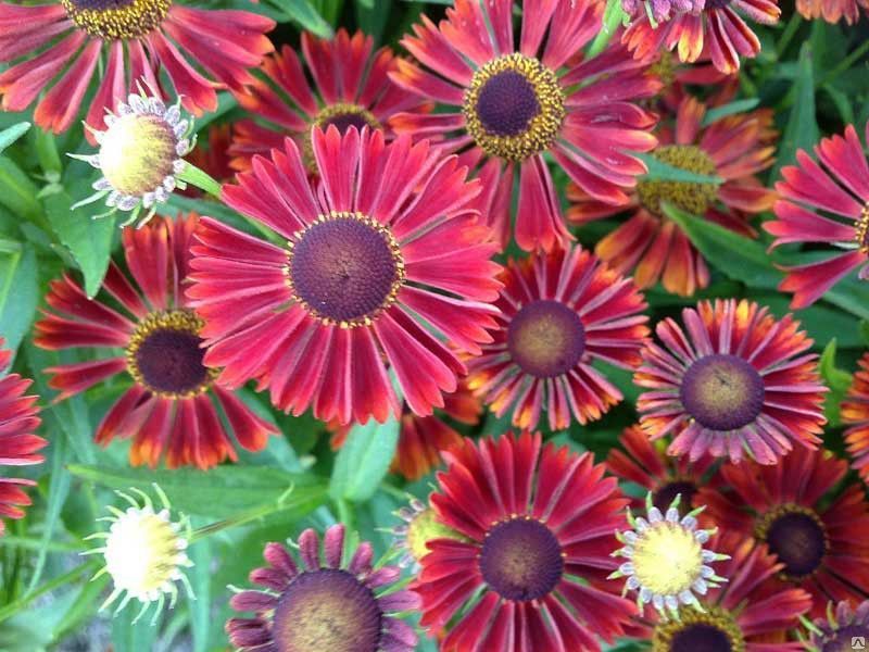 Гелениум Марди Грас хорошо чувствует себя в достаточно плотных посадках вместе с осенними астрами. Гелениум гибридный Mardi Gras (Марди Грасс): – многолетнее растение; - растет прямостоячими кустами на сильных стеблях; - взрослое растение достигает высоты 90 см и диаметра 40 см; - цветет, начиная с августа, обильно золотисто-желтыми с коричневым центром крупными цветами; - очень хорошо подходит для срезания; - растение не переносит засушливую погоду, поэтому требует хорошего полива в жару. При этом неприхотлив к подкармливанию.