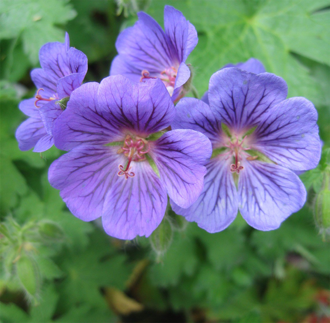 Выведена в результате скрещивания герани грузинской с геранью плосколепестной. Многолетнее растение. Этот вид известен более 100 лет. На солнечных местах и плодородных почвах это растение образует пышный, 30- 45 см высотой, быстро разрастающийся куст. В июле он покрывается многочисленными светло-фиолетовыми цветками с красивыми опушенными пятираздельными листьями, по краю зубчатыми. Осенью они приобретают оранжево-желтый или кирпично-красный оттенок.