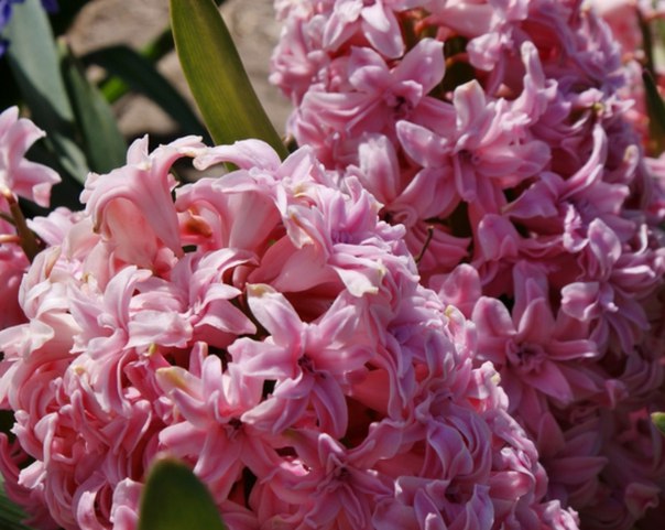 Гиацинт Deligh розовой окраски, высотой 20 см. Соцветие плотное, широкое, 9-10 см длиной, в кисти насчитывается до 15 цветков, диаметр цветка 3,5-4,5 см. Цветет с середины апреля.