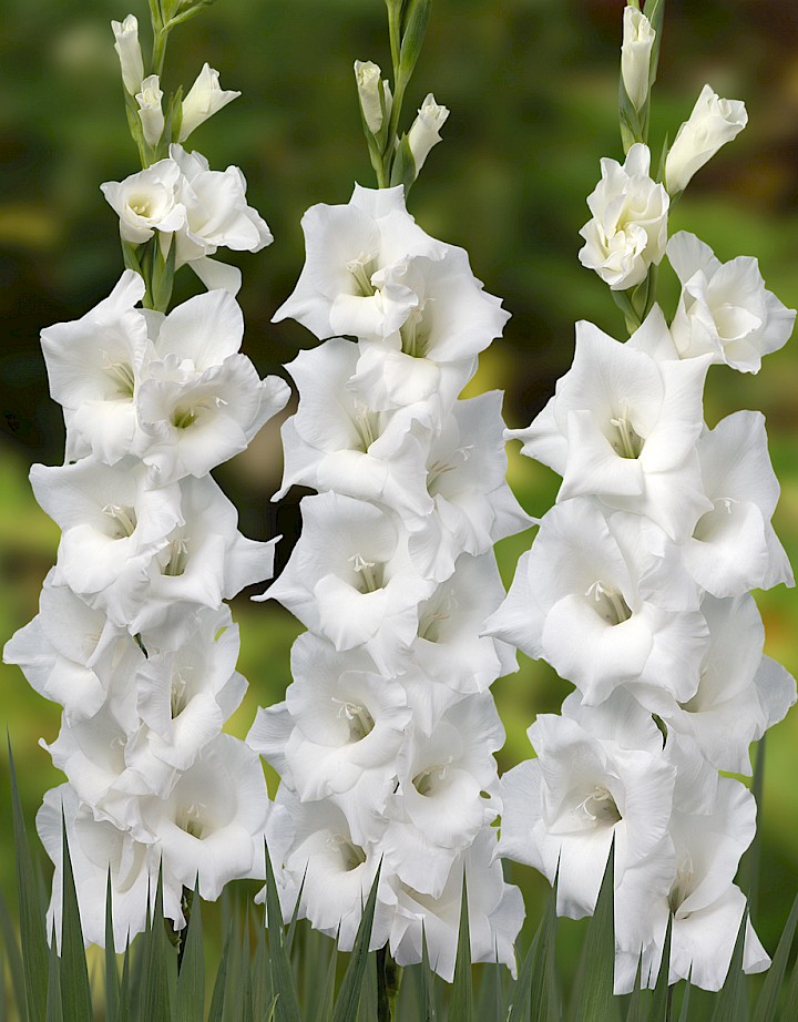 Гладиолус Эссеншл (Gladiolus Essential) многолетнее клубнелуковичное растение высотой 80-110 см. Цветок белоснежный