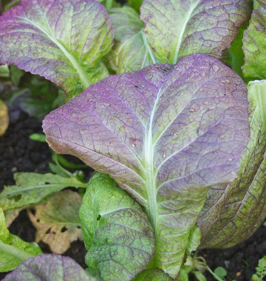 Горчица Osaka Purple - компактное растение высотой 30-35 см. Стебли сочные. Листья большие, зеленые с пурпурным оттенком или полностью пурпурные, уточненные, с ярко выраженным жилкованием. Вкус мягкий, приятный. Урожай собирают через 40 дней после всходов.