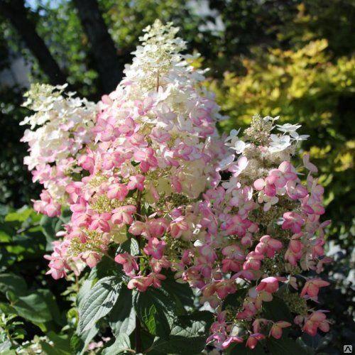 Саженцы гортензии Angels Blush становится раскидистым, крупномерным растением, достигая 2 м высоту и до 3 м в ширину.Пора цветения наступает в сентябре. Соцветия большие, широкие в форме конуса, состоящие из молочных цветочков, которые впоследствии меняют окрас, сменяясь на розовый цвет, а затем на красный.Листва овальная, зеленая с видимыми прожилками.Предпочитает солнечный свет или небольшую полутень.Хорошо растет на увлажненных и плодородных грунтах.Зимние условия переносит стоически. Часто используют как в групповых посадках, так и в одиночном соло.
