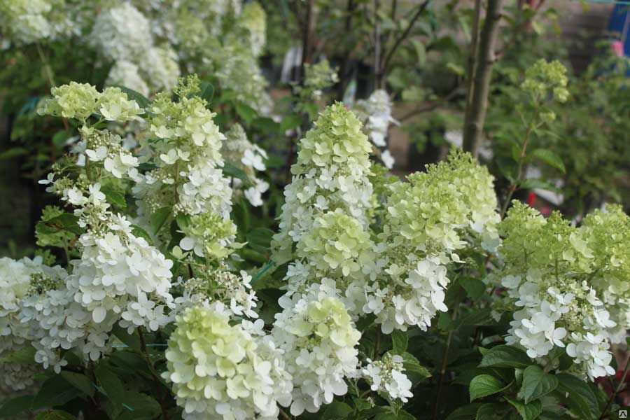 Саженцы гортензии метельчатой Great Escape, как и большинство метельчатых гортензий, довольно высокий кустарник. Куст, превышающий высоту в 2 м, имеет раскидистую крону, во время цветения обильно усеянную соцветиями. Конусообразные соцветия, до 20 см в диаметре, летом белые, а к осени становятся сиреневыми. Цветки в соцветиях двух видов – фертильные, дающие семена, и стерильные, за счет которых куст имеет декоративный вид.Не выносящий извести в почве, кустарник крупномера Great Escape любит слабокислую, суглинистую почву, с изрядной долей гумуса, частый полив и безветренное место.