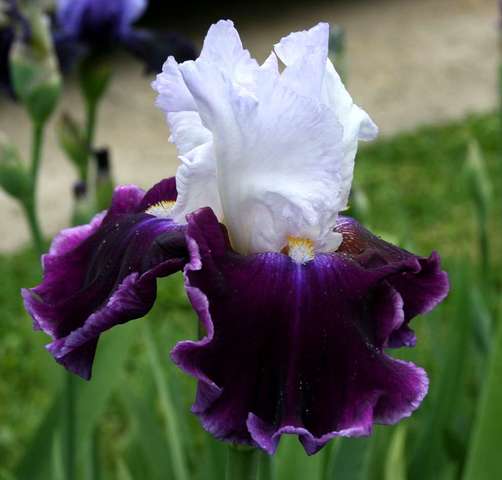 Рассада ириса Passion and Purity – это сорт высокорослых ирисов с контрастной расцветкой. Верхние доли (стандарты) сорта – белоснежные до такой степени, что белый цвет кажется ярким. Нижние доли (фолы) – сливово-пурпурные, насыщенного цвета, бархатистые, с тонкой каймой сиреневого цвета. Фолы опущены вниз и составляют противовес вертикальным стандартам. Все лепестки имеют волнистые края. Бородка – желтая с белым кончиком