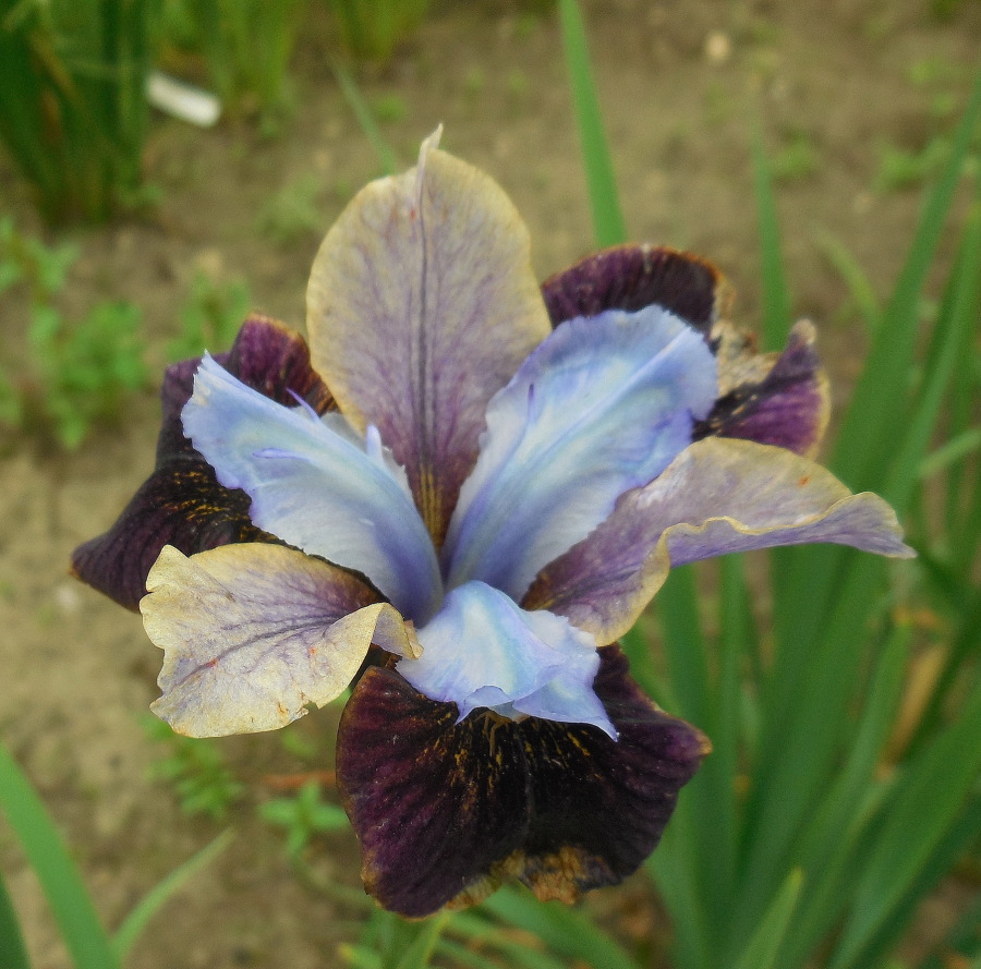 Цветы у этого многолетника среднего размера, их диаметр не превышает 8-10 см. Этот сорт считается загадочным и немного мистическим, поэтому цветение ириса в саду может вызывать у остальных растений благоговейный страх и веру в мистику. Верхние лепестки представлены витиеватым меланжем из темно-сиреневого и желтого оттенка, а на их фоне отчетливо выделяются плотные голубые включения. Нижние лепестки окрашены в фиолетовый оттенок с бронзовым напылением. При этом основной окраской считается голубой, сиреневый и фиолетовый цвет. Цветы махровые и имеют кайму сиреневого оттенка на основных лепестках, желтого – на нижних лепестках. Ирис обладает средним ароматом.
