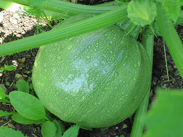 Кабачок Tintoretto - новый высокоурожайный сорт. Растение компактное, кустового типа. На одном растении одновременно завязывается 4-5 плодов массой 600-700 г. Форма плодов округлая и плоско-округлая, слаборебристая. Кожура тонкая, серо-зеленая, гладкая. Мякоть белого цвета, нежная, сладкого вкуса. Семян мало.
