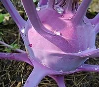 Позднеспелый сорт (от всходов до технической спелости 100-110 дней). Стеблеплод среднего размера, плоскоокруглый, темно-фиолетовый, массой 1,5-2,0 кг. Мякоть белая, сочная. По вкусу напоминает кочерыжку. Вкусовые качества хорошие. Урожайность 3-3,5 кг/кв.м. Ценность сорта: морозоустойчивость, пригодность для непродолжительного хранения. Содержит соли калия, глюкозу и фруктозу. Благотворно влияет на нервную систему, обмен веществ, выводит жидкость из организма, снижает холестерин. Рекомендуется для употребления в свежем виде и для переработки