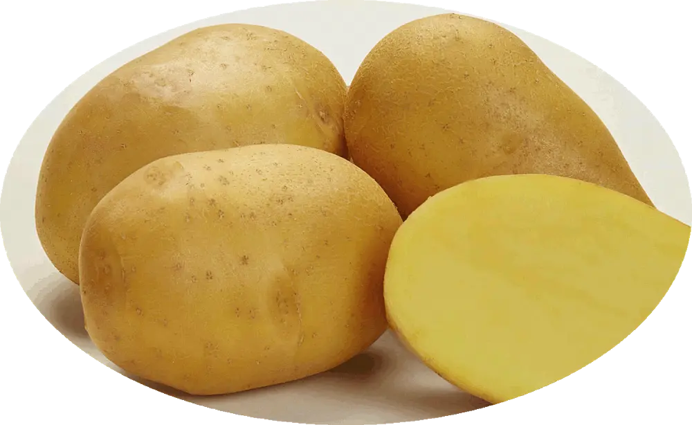 Раннеспелый сорт столового назначения. Растение средней высоты до высокого, стеблевого типа, прямостоячее до полупрямостоячего. Клубень овальный с мелкими до средней глубины глазками. Кожура и мякоть жёлтая.