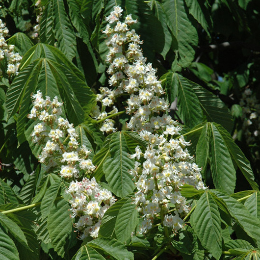 Саженцы Каштан обыкновенный Fastigiata отличаются очень красивым и обильным цветением. В основном это растение высаживают на участке с декоративной целью, для лечебной цели многие садоводы собирают его листья, кору, соцветия и плоды. Данный крупномер представляет собой массивное дерево с густой и очень красивой кроной. В мае у него на ветвях появляются крупные белые соцветия, после чего они завязывают декоративные плоды. Они представляют собой шаровидные коробочки с многочисленными шипами и тремя створками. Внутри у них располагается от одного до трех блестящих семечек. Этот сорт каштана идеален для высадки в парках и аллеях.