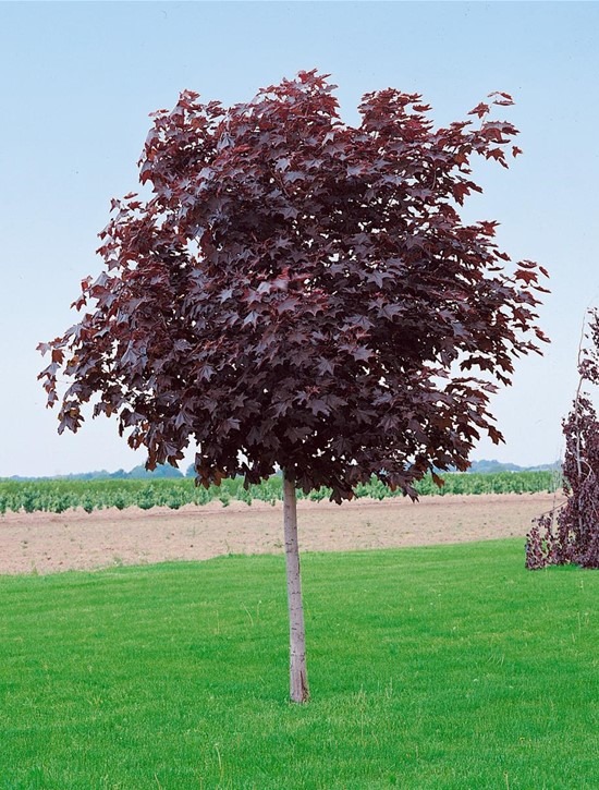 Саженцы клена остролистного Royal Red станут ярким дополнением к любому ландшафту. Хорошо смотрятся в одиночных, древесно-кустарниковых либо групповых посадках.При хорошем своевременном уходе за саженцами формируется красивая неравномерно плотная крона в форме широкой пирамиды.В период распускания листья имеют ярко- или светло-красный оттенок, позже темно-красный без пурпура, осенью окраска будто выцветает, становясь более светлой.На фоне красной листвы желтые цветки в соцветиях выглядят очень эффектно.Плод – темно-бурая крылатка.