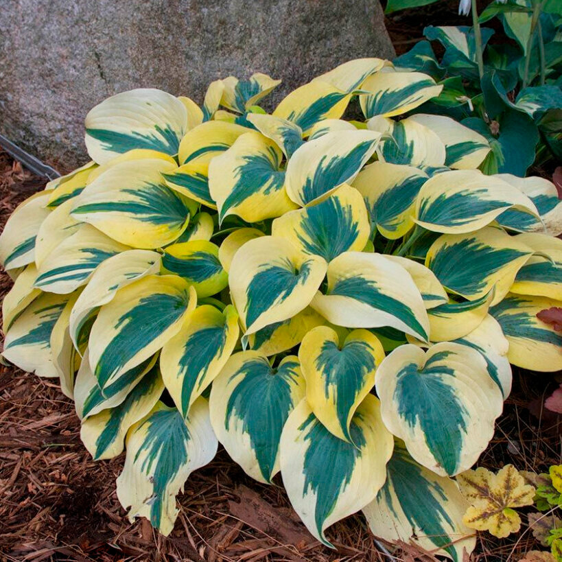 - Характеристики листья сердцевидные с заостренным краем, центр листа темно-зеленый с голубым оттенком, кайма широкая сливочно-желтая