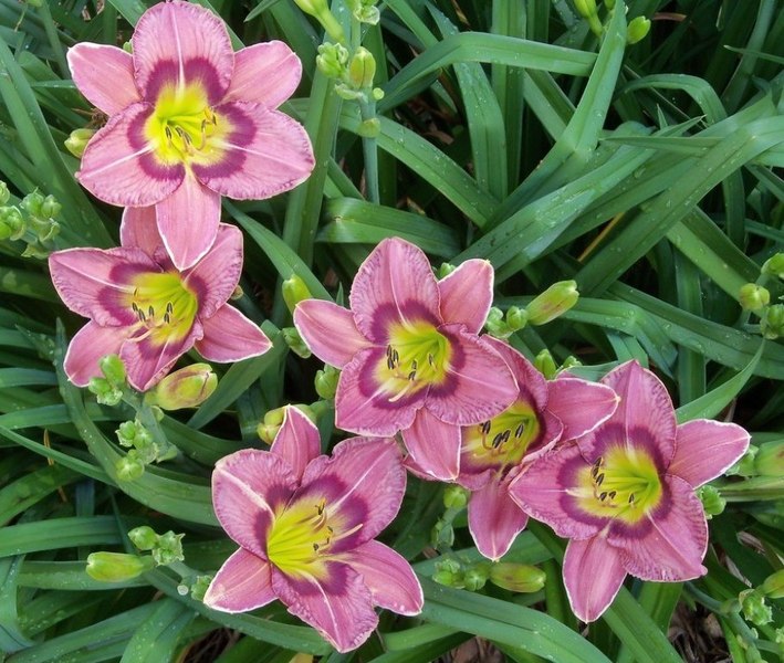 Саженцы лилейника Allways Afternoon привнесут на участок нежное очарование прекрасных лилово-розовых цветов с желтым горлом и темно-пурпурным глазом. Этот чудесный сорт отмечен Высшей серебряной медалью 1997 года. Саженцы этого лилейника становятся центральными элементами декоративным композиций с другими многолетниками, а также используются в солитерных посадках на газонах. Длительное и обильное цветение начинается в середине июля и продолжается около 2-2,5 месяцев.Крупномер Allways Afternoon вырастает до 60 см. Этот лилейник стойко переносит сухую погоды и морозы, а также может похвастаться удивительной устойчивостью к заболеванием и вредителям.