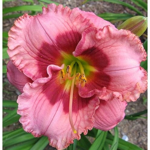 Саженцы лилейника Cherry Valentine можно начинать выращивать уже в конце марта в начале апреля. Это гибридный сорт в последнее время пользуется большой популярностью, так как именно он неприхотлив к типу почвы и может расти как в тени, так и на солнце. Кстати, на открытых местах крупномер Cherry Valentine цветет обильнее и цвет бутонов более насыщенный, нежели в тени. Высота данного сорта примерно 60 - 70 см, цветок в диаметре не очень крупный, около 10 см. Бутоны ярко розового цвета с волнистыми, гофрированными краями, которые окрашены в багровый цвет, как и прожилки на лепестках. Середина цветка темно - красная, а горло имеет лимонный оттенок. Они собраны в раскидистые соцветия. Лилейник Cherry Valentine порадует обильным цветением с середины июля и на протяжении 30 - 35 дней, к тому же плюс этого сорта еще проявляется в повторном цветении.