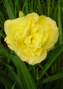 Лилейник Yellow Submarine отличается своей необычайной формой цветка. Крупный, махровый, ароматный цветок лимонно-желтого цвета с сильно гофрированными лепестками высоко поднимается над ярко-зеленой розеткой листьев. На ветвистых цветоносах, порой достигающих 1 метра в длину, могут появиться до 30 таких бутонов. Каждый из них распускается всего на один день, но их огромное количество создает впечатление обильного и продолжительного цветения. Сорт позднецветущий, поэтому повторного цветения не наблюдается. Такой удивительный цветок является настоящим украшением сада. Лилейник «Желтая субмарина» можно использовать как солирующее растение на газоне или для создания ярких и интересных композиций из цветов.
