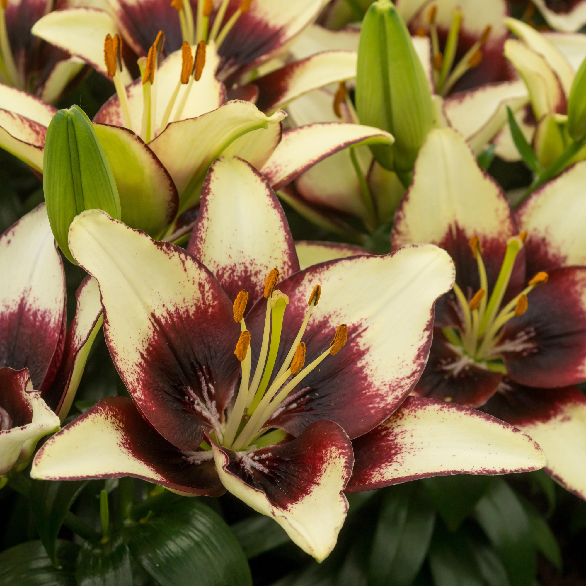 Луковицы Лилии азиатской Куритиба (Lilium asiatic Curitiba) относятся к низкорослым сортам. Взрослое растение не превышает высоты 60-70 см, однако может стать настоящим украшением сада благодаря крупным, до 17 см в диаметре, цветкам и их удивительной контрастной расцветке. Цветок с нежно-кремовыми лепестками в центре имеет насыщенно-винный цвет и узкую окантовку. Красавицу Куритиба можно смело отнести к одним из самых эффектных декоративных сортов лилий, привлекающих внимание своей «смелой» окраской. Лилия азиатская горшечная Куритиба подойдет как для одиночной, так и для групповой посадки.