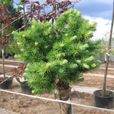Форма японской лиственницы с компактной, но неравномерной и округлой кроной, которая формируется многочисленными плотными побегами. Украшена длинной мягкой хвоей серебристо-голубого цвета.
