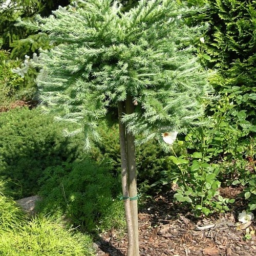 Карликовая, компактная форма с небесно-голубой хвоей.