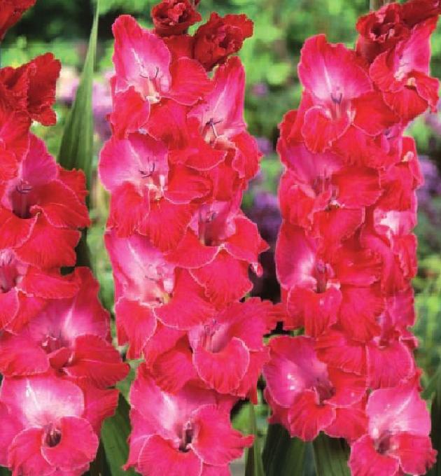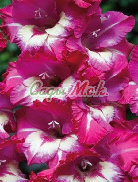 Гладиолус крупноцветковый Эва Пьюксо - невероятно красивый сорт с крупными цветками. Цветки собранные в колосовидные соцветия, насыщенно-розового цвета с более светлым центром и тонкой каймой по краю лепестков. Растение высотой 80-110 см, неприхотливо в выращивании, легко размножается клубнелуковицами или клубнепочками. Любит обильный полив, после полива почву вокруг растения взрыхляют и окучивают. Перед посадкой Гладиолуса крупноцветкового Эва Пьюксо в почву рекомендуется внести минеральное удобрение для луковичных цветов, хорошо взрыхлить и дренировать.