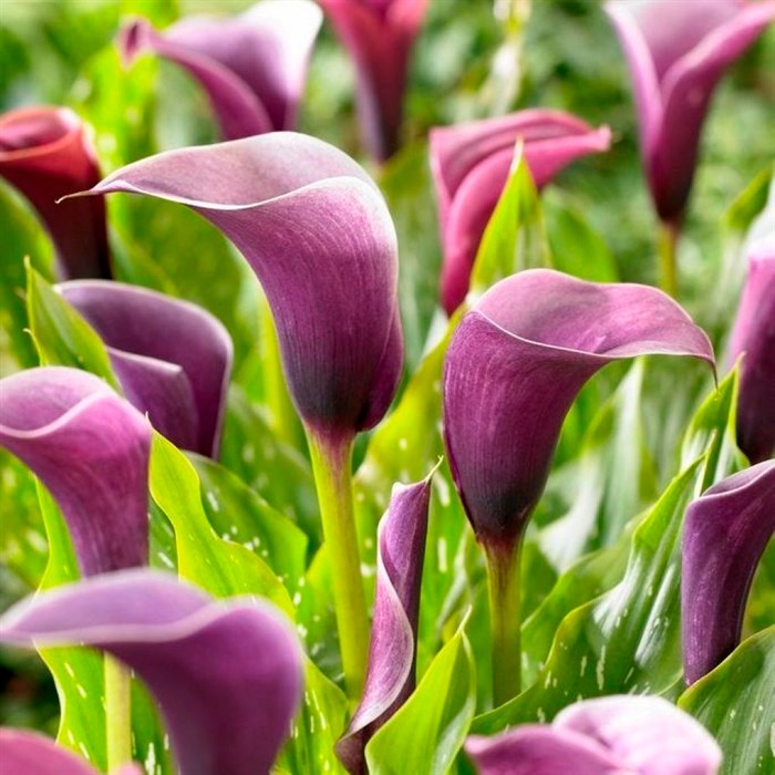 Клубни Каллы обыкновенной Акцент (Calla Accent) рекомендуют купить ландшафтные дизайнеры, так как этот сорт подарит даже самому обычному саду уникальную красоту на период цветения с июля по сентябрь. Крупные цветы в виде воронок, диаметром 12 сантиметров, насыщенного пурпурного цвета в сочетании с сочной зеленью восковых миндалевидных листьев эффектно смотрятся как в моно композициях, так и в сочетании с другими культурами. Калла Акцент вырастает до 45 сантиметров в высоту. На период роста им необходимы подкормка, полив и приглушенный солнечный свет. Для зимовки клубни выкапывают, сушат, и убирают в темное, прохладное место.