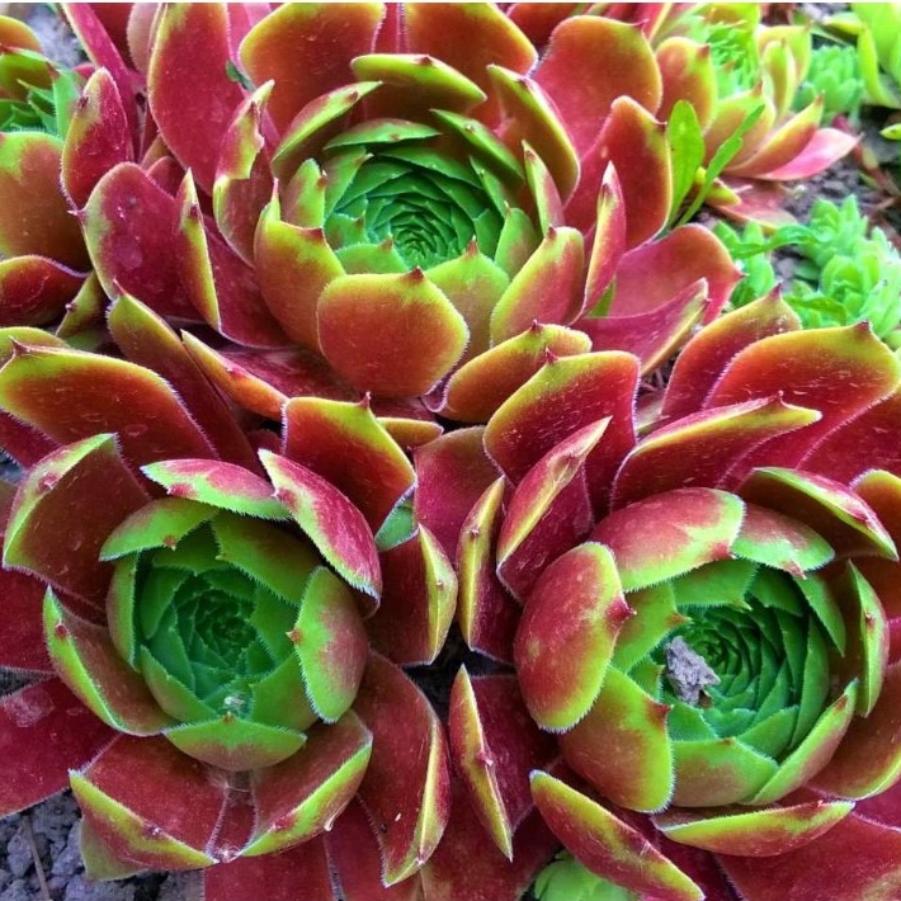Молодило Collage - травянистый, вечнозеленый, почвопокровный многолетник. Образует живописные группы из розеток. Высота до 10-15 см., ширина до 30 см. Листочки сочные, с зелеными кончиками и краями и с розовой серединкой. Цветы розовые, мелкие на вертикальных цветоносах. Наиболее декоративно с мая по ноябрь.