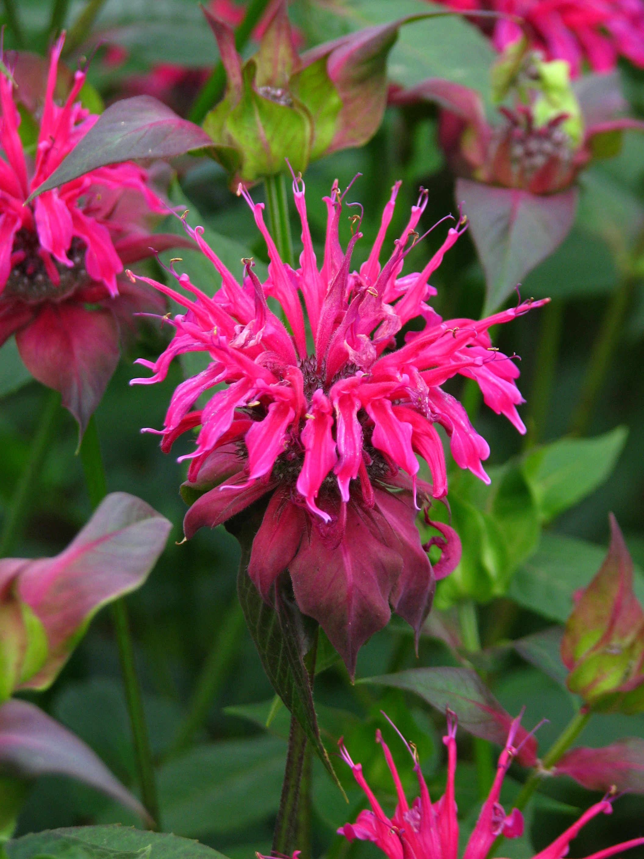 Монарда Panorama - декоративное морозостойкое и достаточно устойчивое к болезням и вредителям травянистое растение, которое, разрастаясь, образует долгоцветущие густые заросли, распространяющие вокруг себя удивительно приятный аромат. Стебли прямостоячие, слегка опушенные. Цветки мелкие, алого, розового, лилового или фиолетового цвета, собраны в густое головчатое соцветие до 6см в диаметре, иногда развивается еще одно соцветие, расположенное над первым. Крупные, листовидные прицветники часто одной окраски с цветками. Монарда долго сохраняет декоративность - сначала она радует пышным продолжительным цветением, а затем её высокие цветоносы с плодами-орешками ещё долго украшают своим экзотическим видом осенне-зимний пейзаж сада.