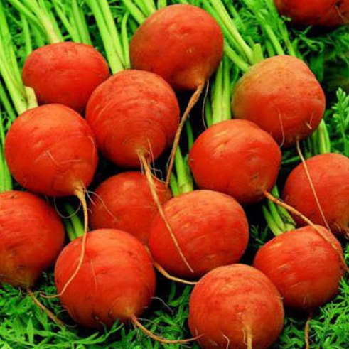 Морковь Paris Market Baron - ранний салатный сорт. Период вегетации - 67 дней. Корнеплоды весьма необычные, округлой и овально-округлой формы, диаметром 2-4 см, интенсивно-оранжевого, почти красного цвета. Мякоть сочная, отличается сладким вкусом. Плоды подходят для использования в свежем виде и консервирования.