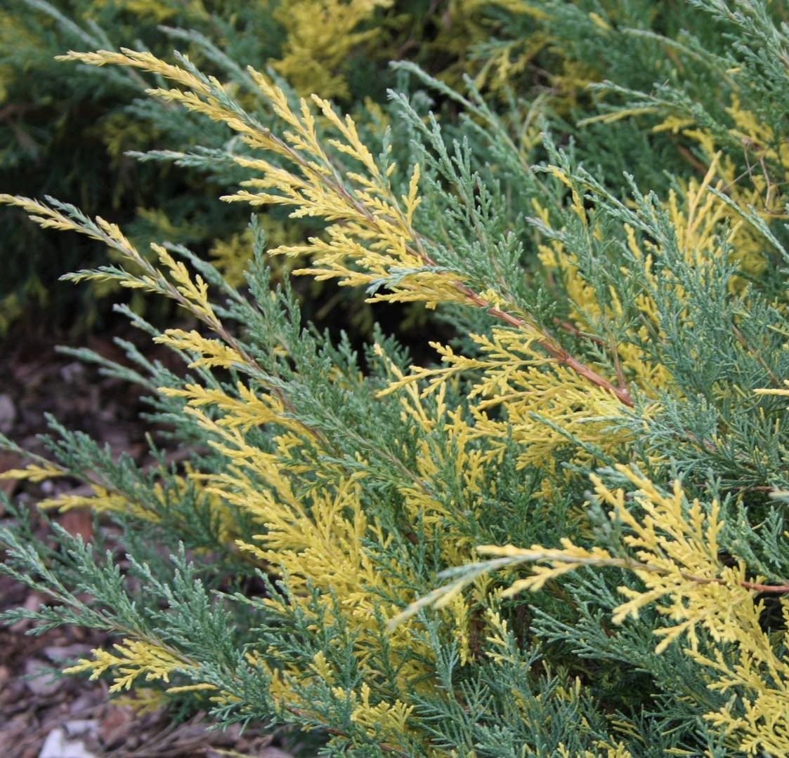 Можжевельник Blue and Gold - оригинальный сорт можжевельника с желто-голубой хвоей. К 10-ти годам достигает 0,8м в высоту и 1м в диаметре. Растет медленно. Крона раскидистая, неправильной формы, состоит из побегов голубого и желтого цвета. Хвоя игольчатая, двухцветная.