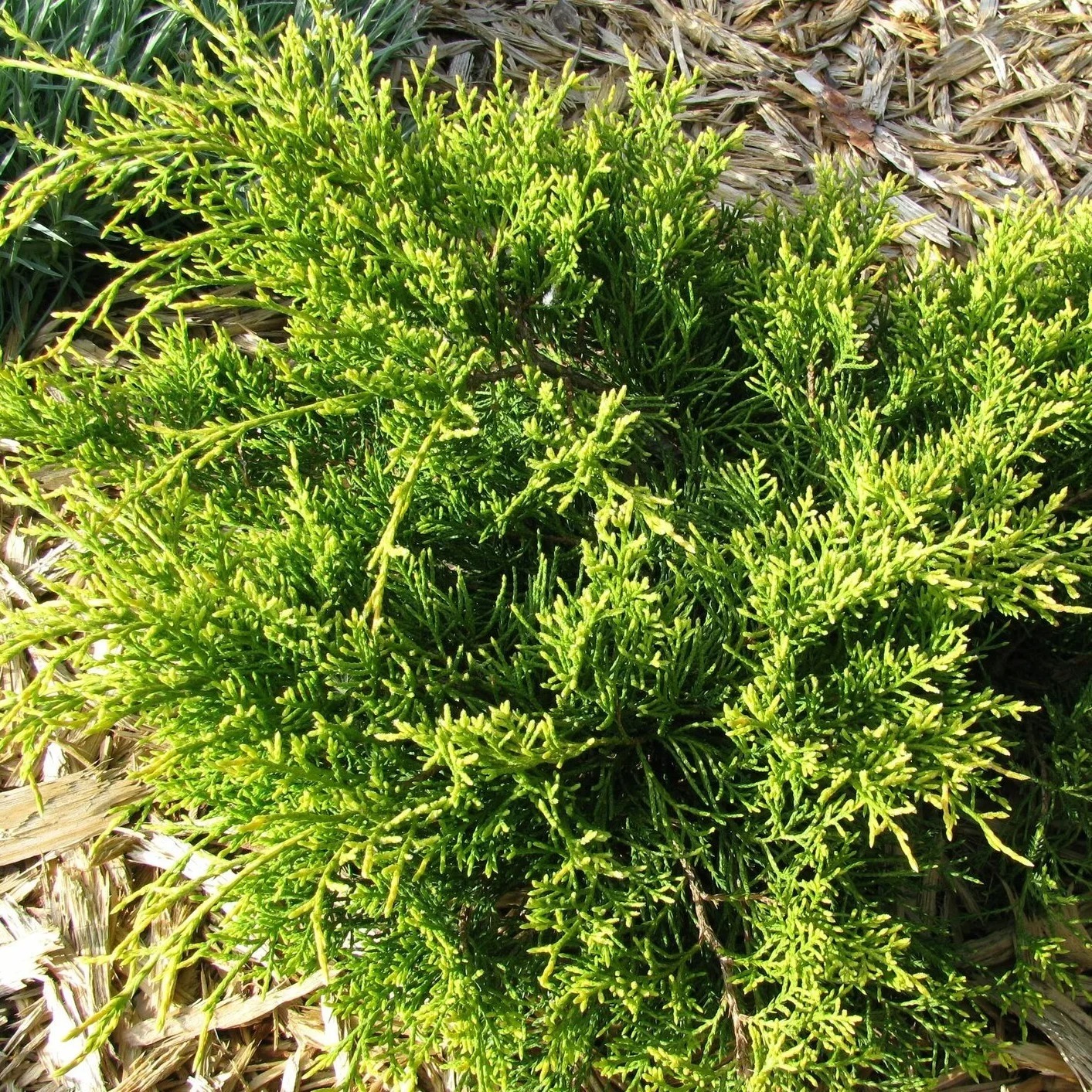 Можжевельник Mordigan Gold - очень широкий распластанный сорт до 1,2 м высоты при ширине 2 м. Ветки горизонтально распростертые, с поникающими концами. Хвоя в основном игловидная, на ростовых побегах полу-прижатая, желтовато-зеленая, весной ярко-желтая.