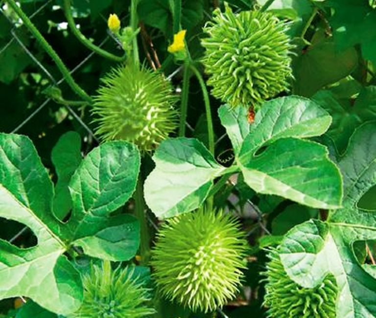 Родина этого интересного вида – Западная Индия. Возделывается как вкусная, полезная овощная и декоративная культура. Сильно ветвящиеся стебли длиной более 3м, с многочисленными усиками, с помощью которых растения взбираются по опорам и быстро образуют живую изгородь, обилие мелких желтых цветков, оригинальные листья делают ангурию очень декоративным растением. Плоды светло-зеленые, овальные, с мягкими и сочными шипами достигают потребительской спелости при длине около 5см (далее, по мере созревания, вкус плодов становится более терпким с кисловатым оттенком). Плодоношение с конца июля до осенних заморозков. Употребляют в свежем виде в различных салатах и закусках, а также для домашних заготовок: соленые и маринованные плоды ангурии – это настоящий деликатес для истинных гурманов. Культура обладает ценнейшим качеством – плоды не накапливают нитраты, полезны людям с сердечно-сосудистыми заболеваниями и хроническими заболеваниями желудочно-кишечного тракта. В прохладном помещении свежие плоды хранятся до нескольких месяцев. Вид устойчив к различным паразитам и болезням и, в отличие от огурца, не подвержен мучнистой росе.